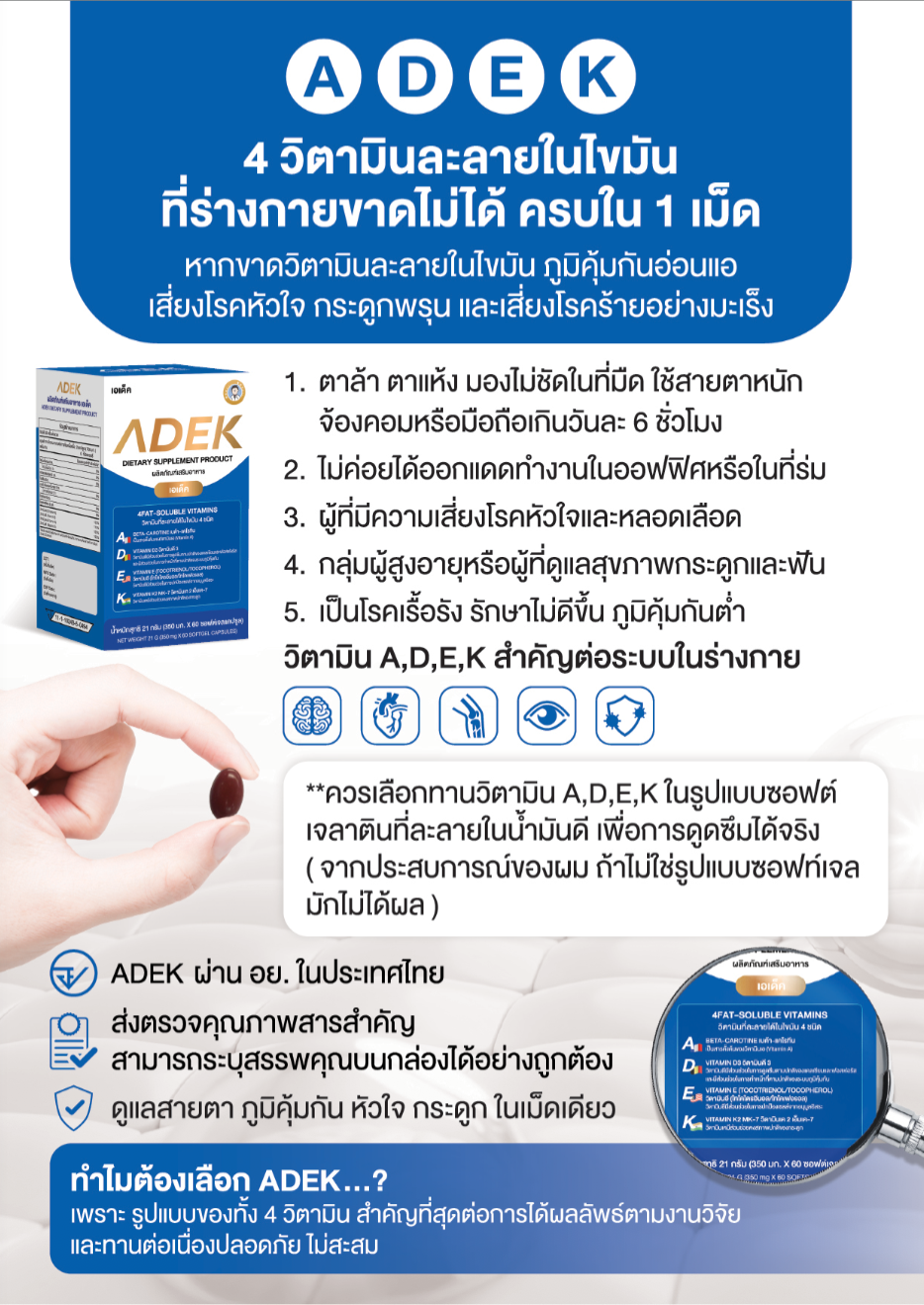 ADEK 4 วิตามันละลายในไขมันที่ร่างกายขาดไม่ได้ครบใน 1 เม็ด มีงานวิจัย
